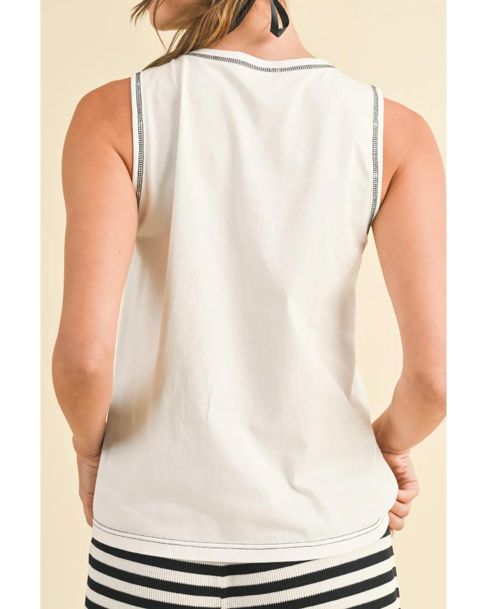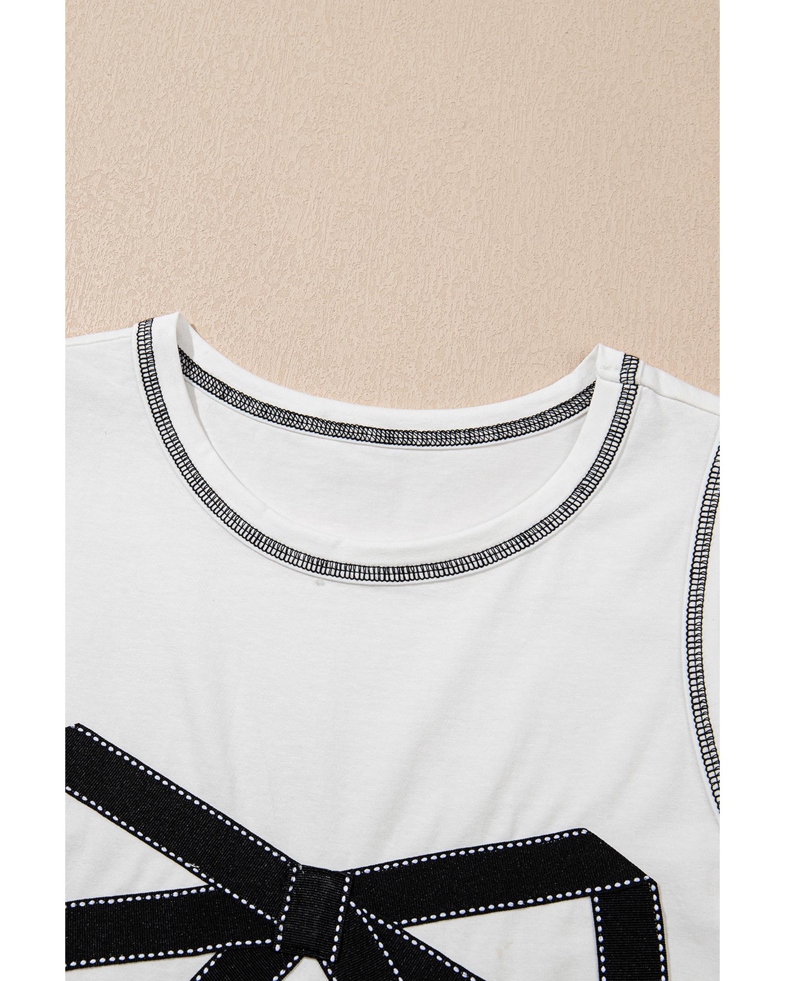White Sweet Bow Stitching Trim Sleeveless Top – S