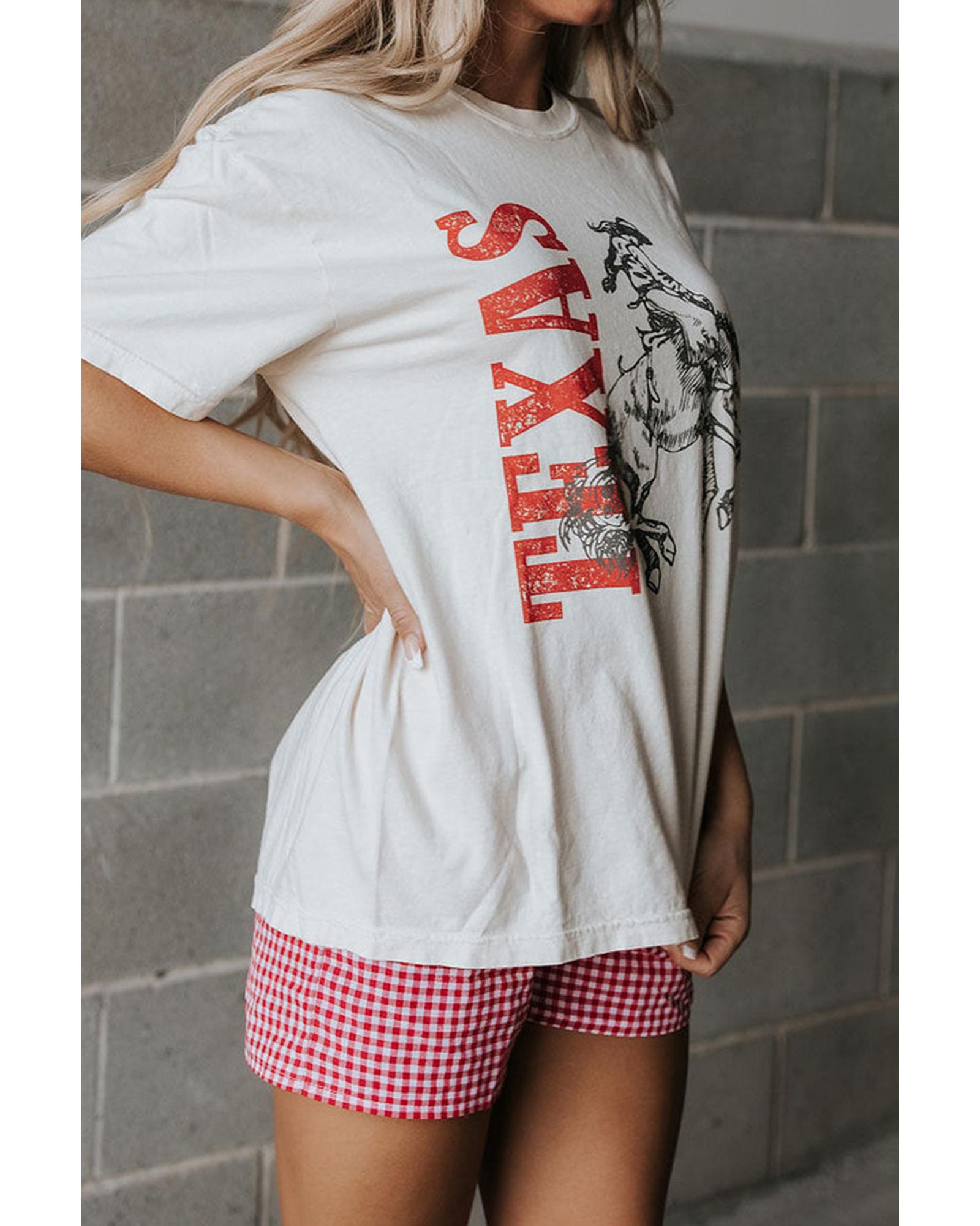 White TEXAS Cowboy Printed Western Fashion T Shirt – 2XL