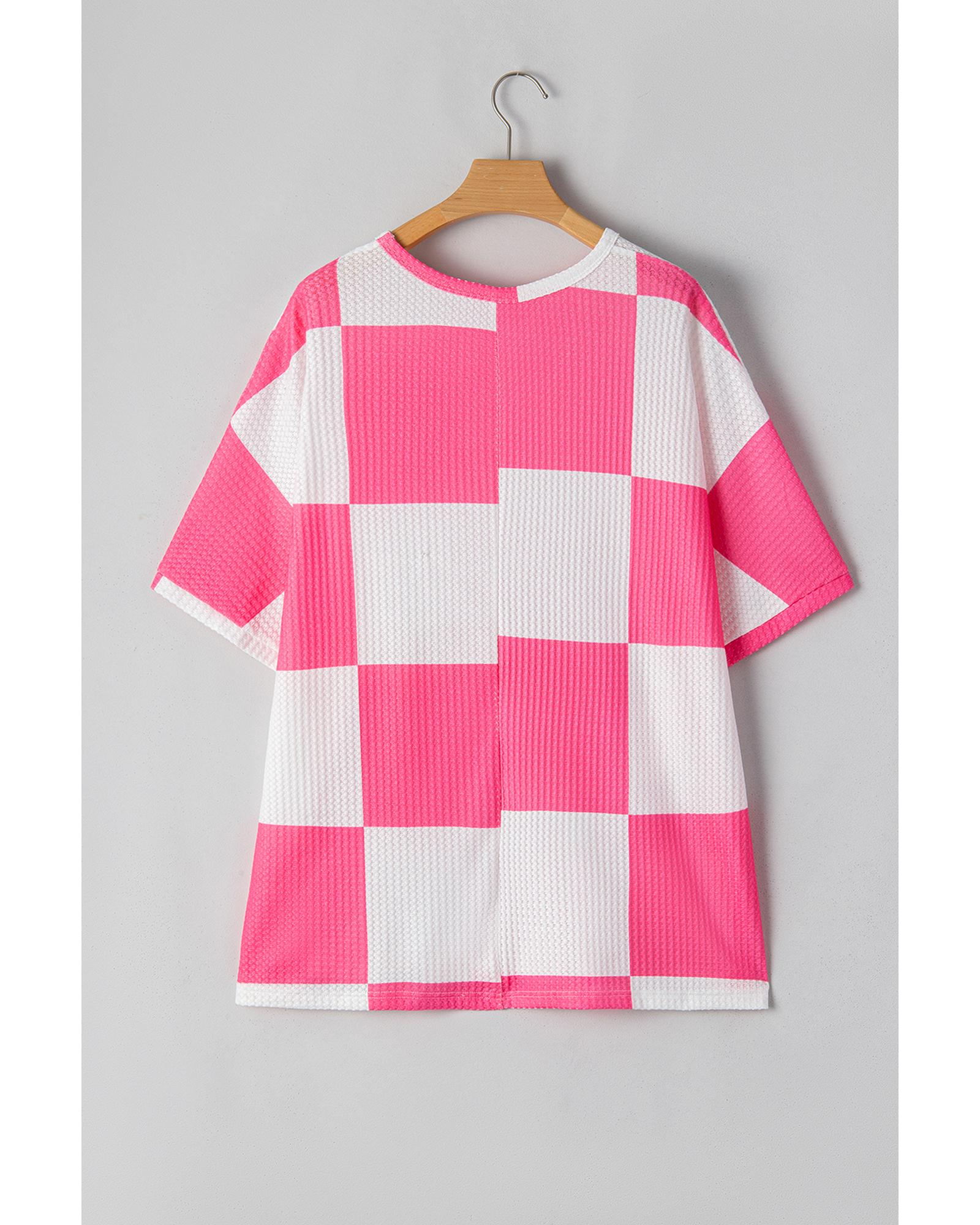 White Textured Checkerboard Round Neck Plus Size T Shirt – 2X