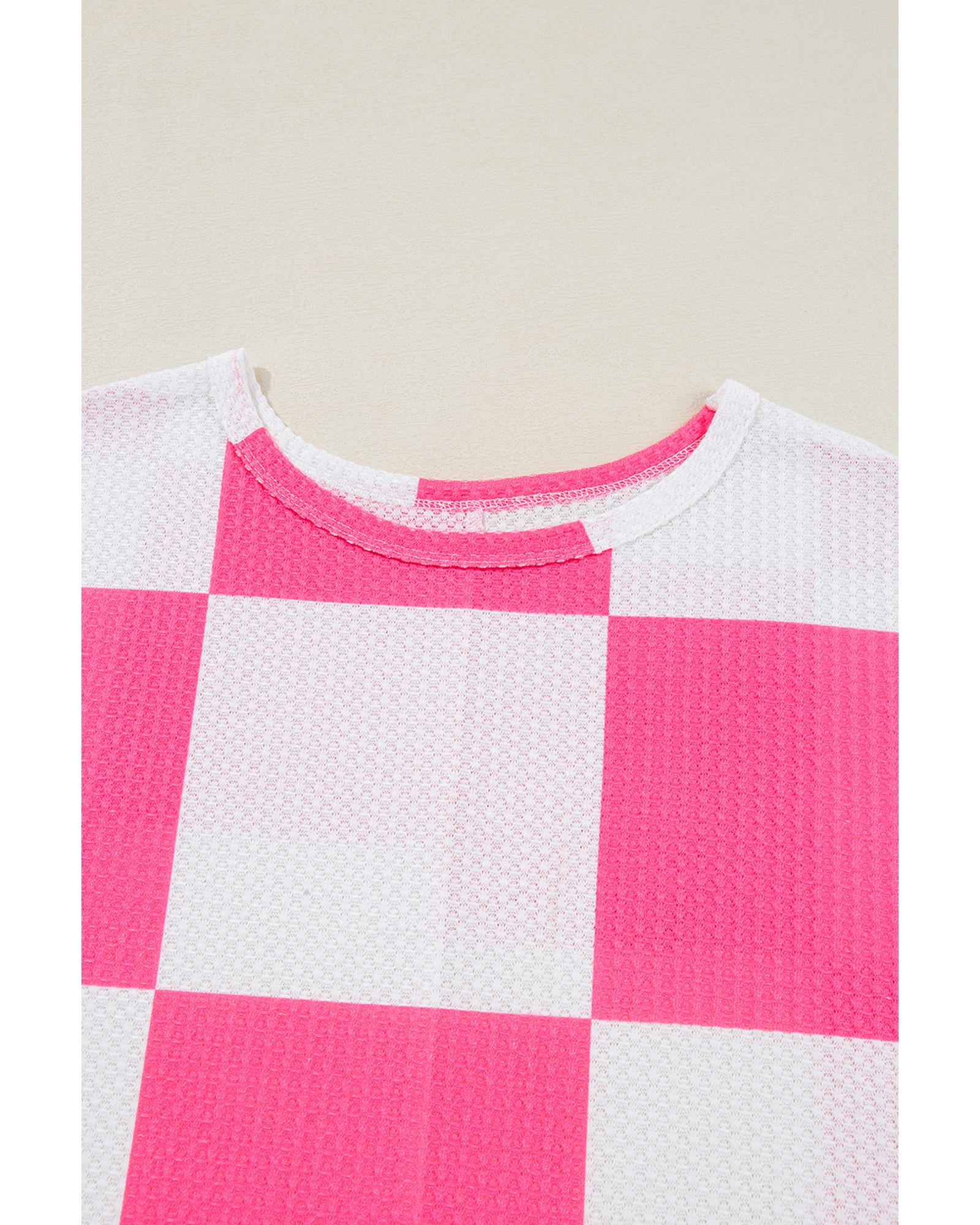 White Textured Checkerboard Round Neck Plus Size T Shirt – 3X