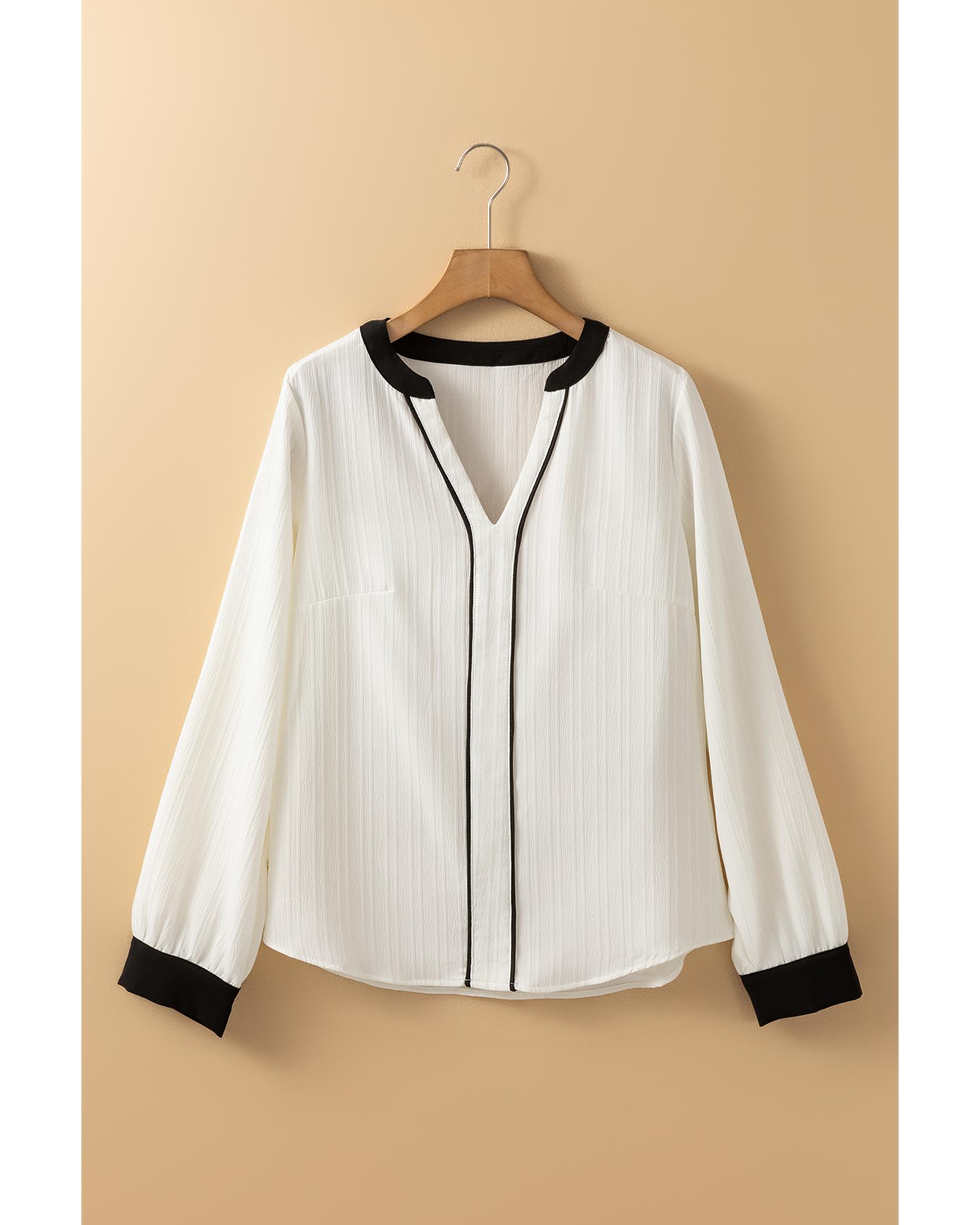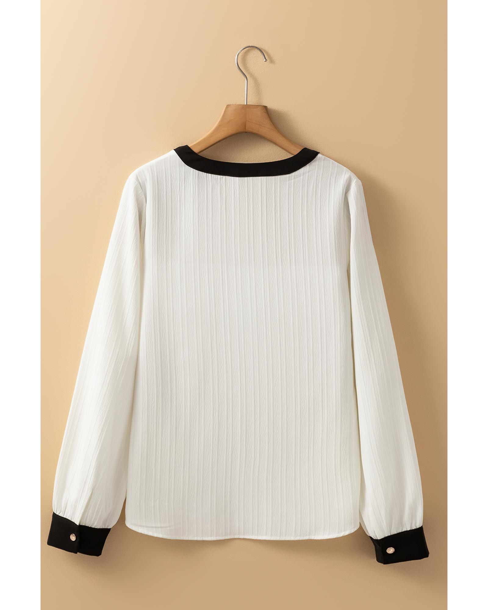 White Geometric Embroidered Long Sleeve Buttoned Blouse - M Original price was: $62.99.Current price is: $33.99.
