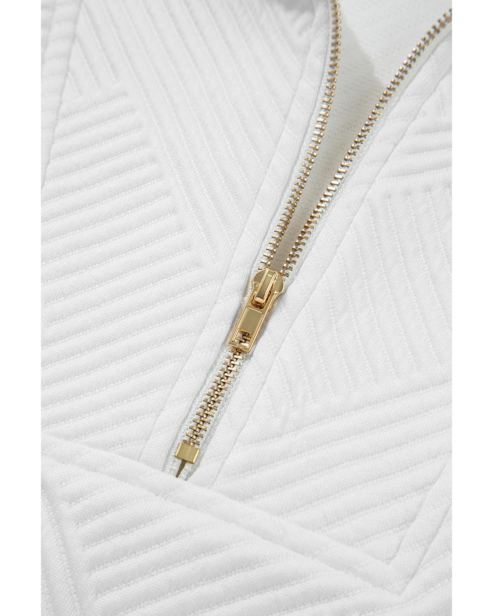 White Textured Half Zip Tank Top Drawstring Shorts Set – S