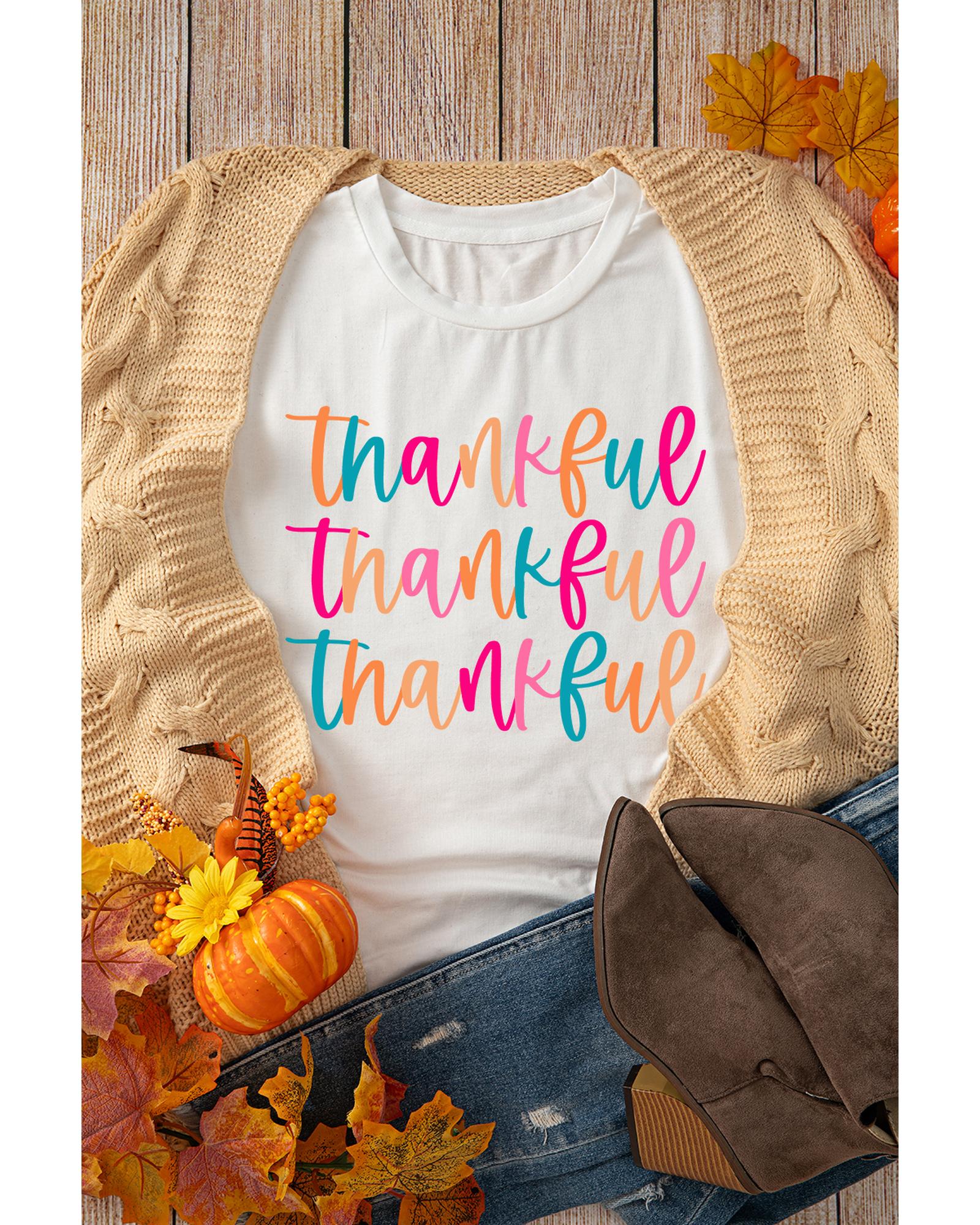 White Thankful Printed Crewneck Thanksgiving T Shirt – 3XL