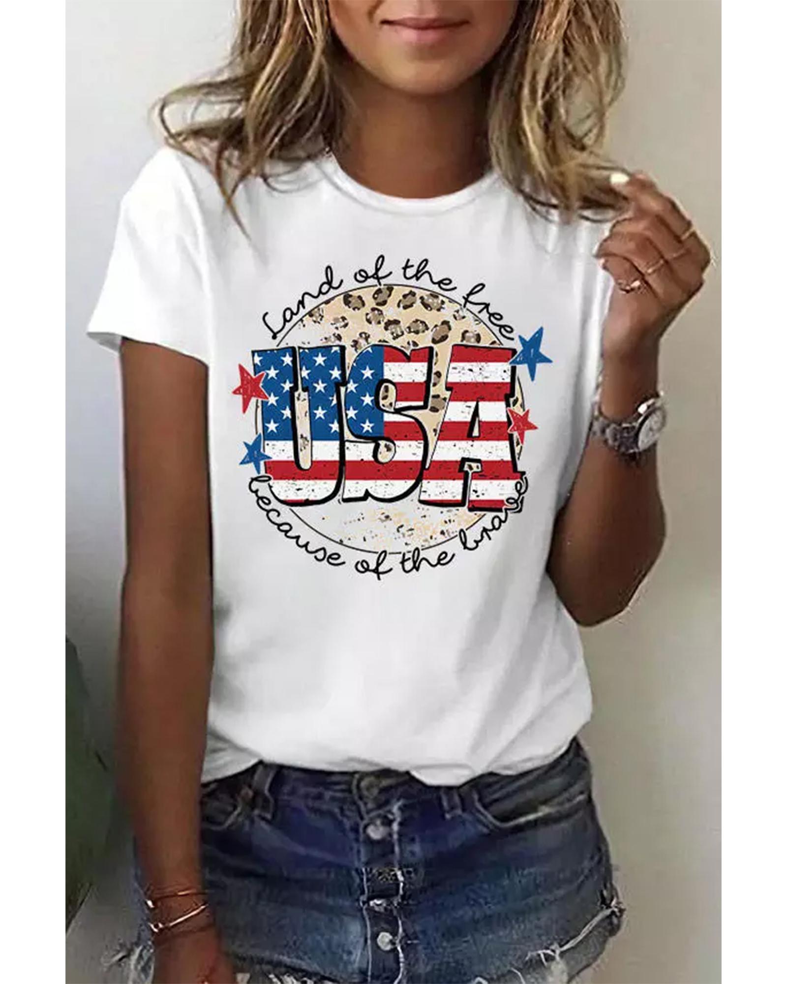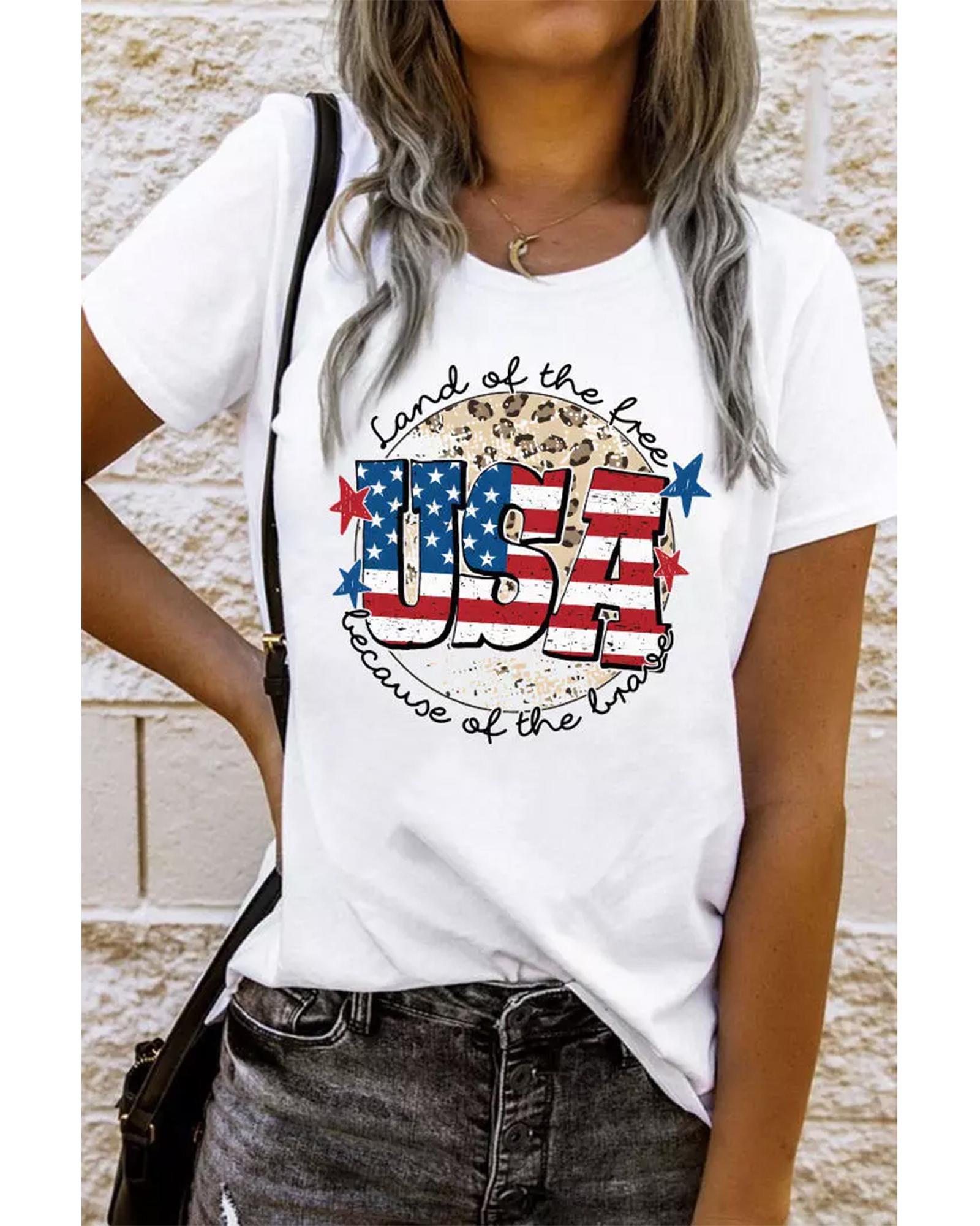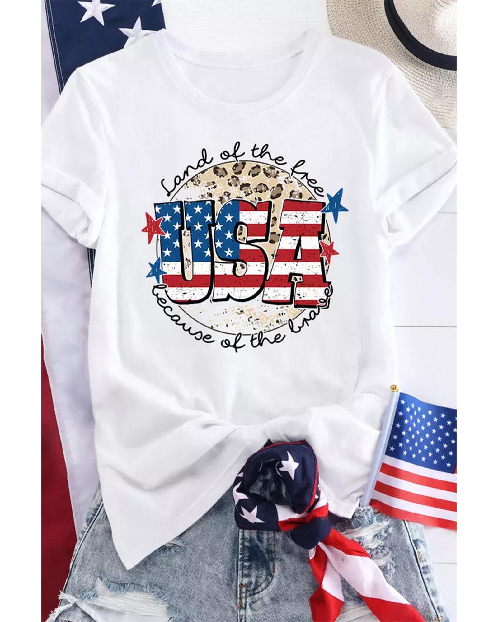 White USA Flag Slogan Graphic T - shirt Short sleeve t