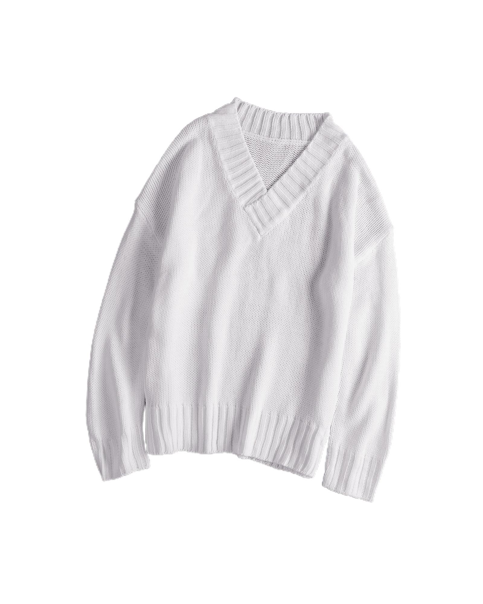 - Luxurious V neck Drop Shoulder Knitted Sweater
