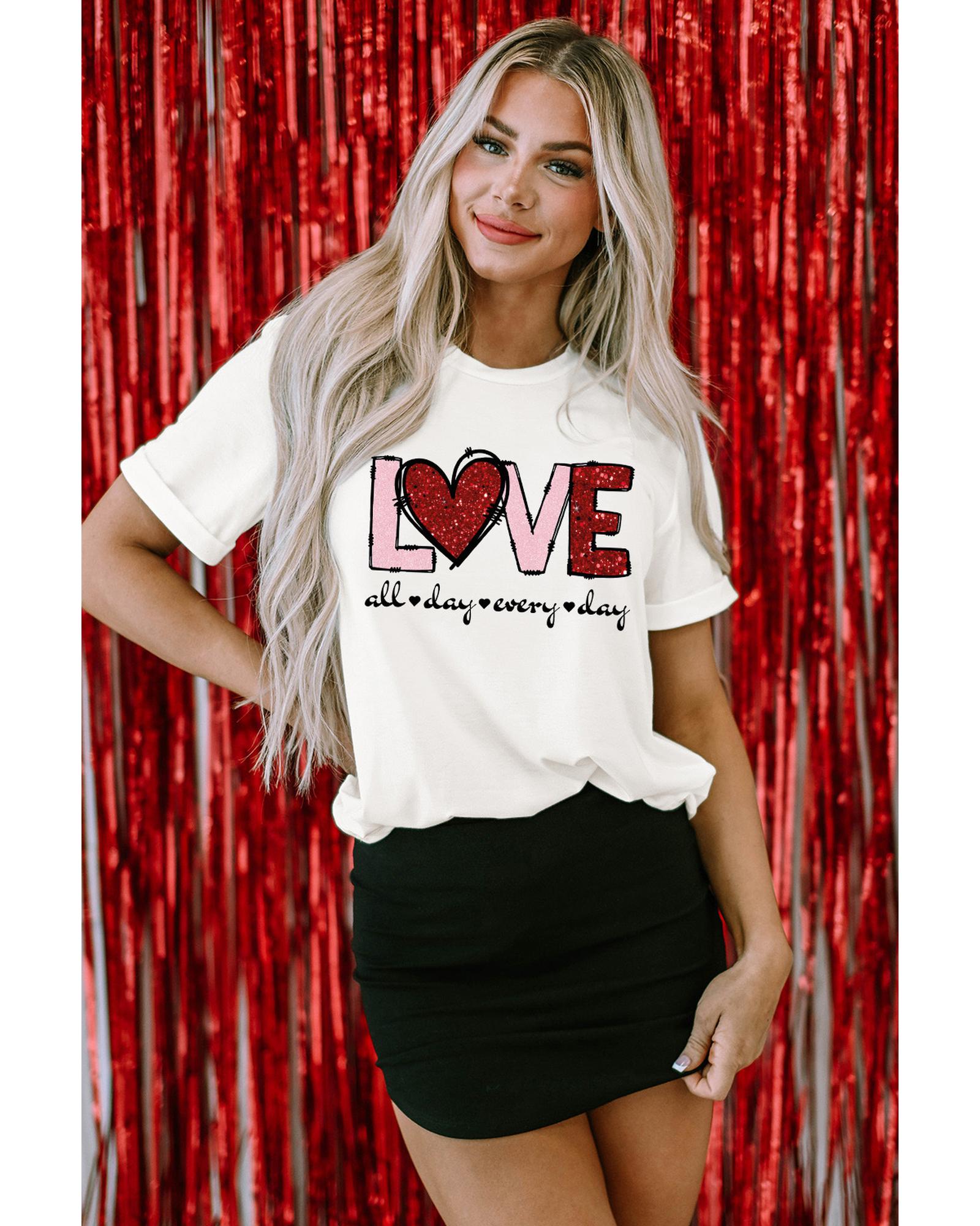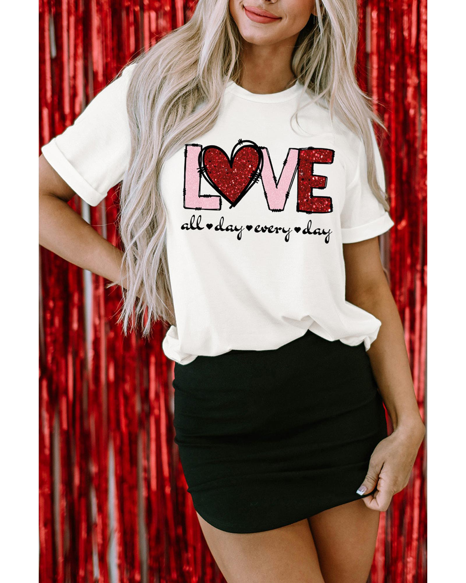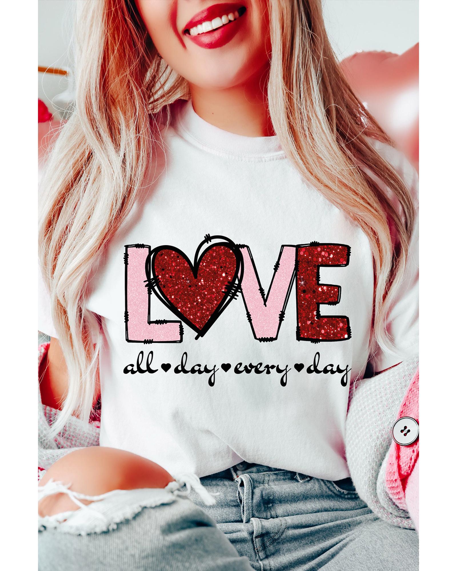 White Valentine LOVE Heart Shape Crew Neck Graphic Tee – 3XL