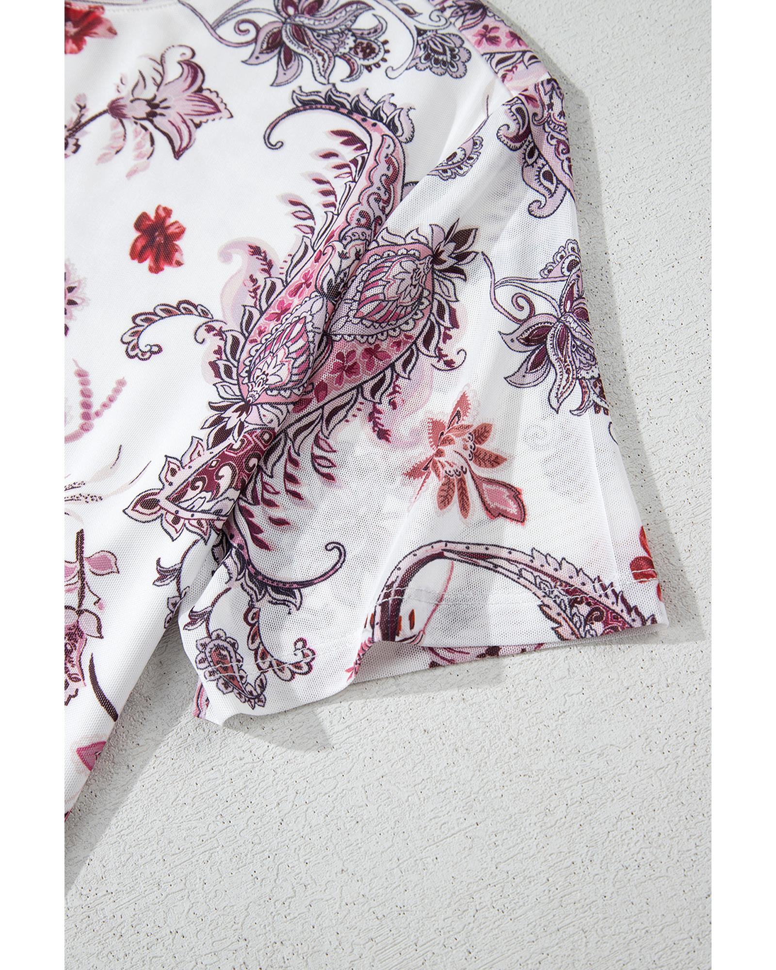 Black Flower Lace See Through Mock Neck Long Sleeve Top - L