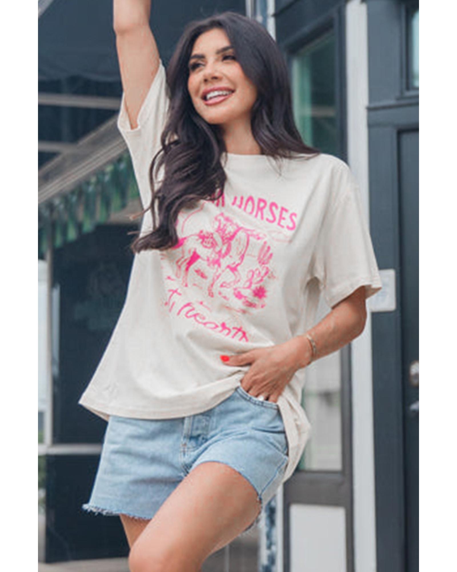 - White Western BREAK HORSES Cowboy Graphic Crewneck T