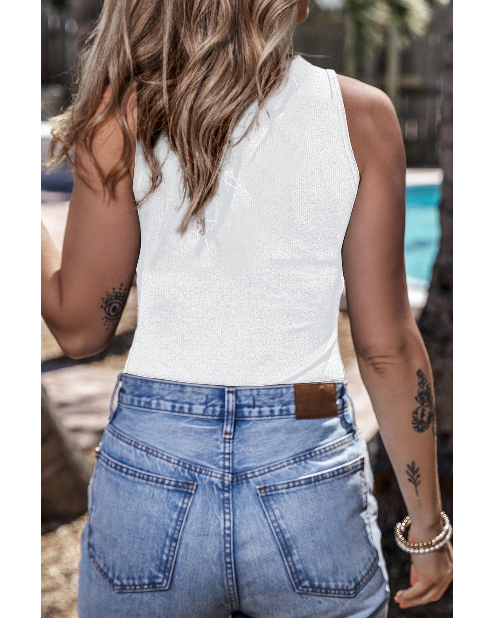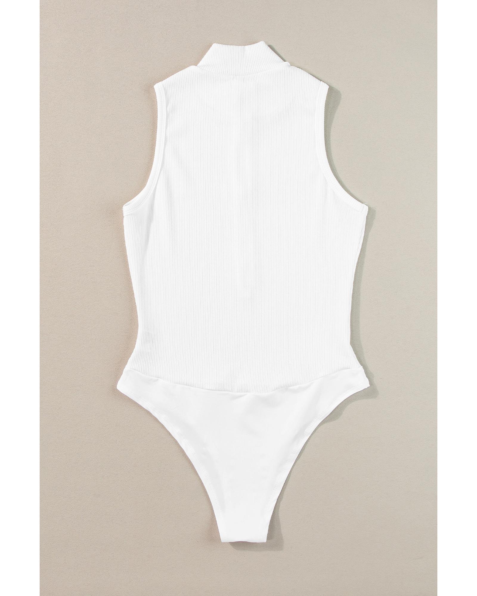 White Zip up Mock Neck Ribbed Sleeveless Bodysuit – S