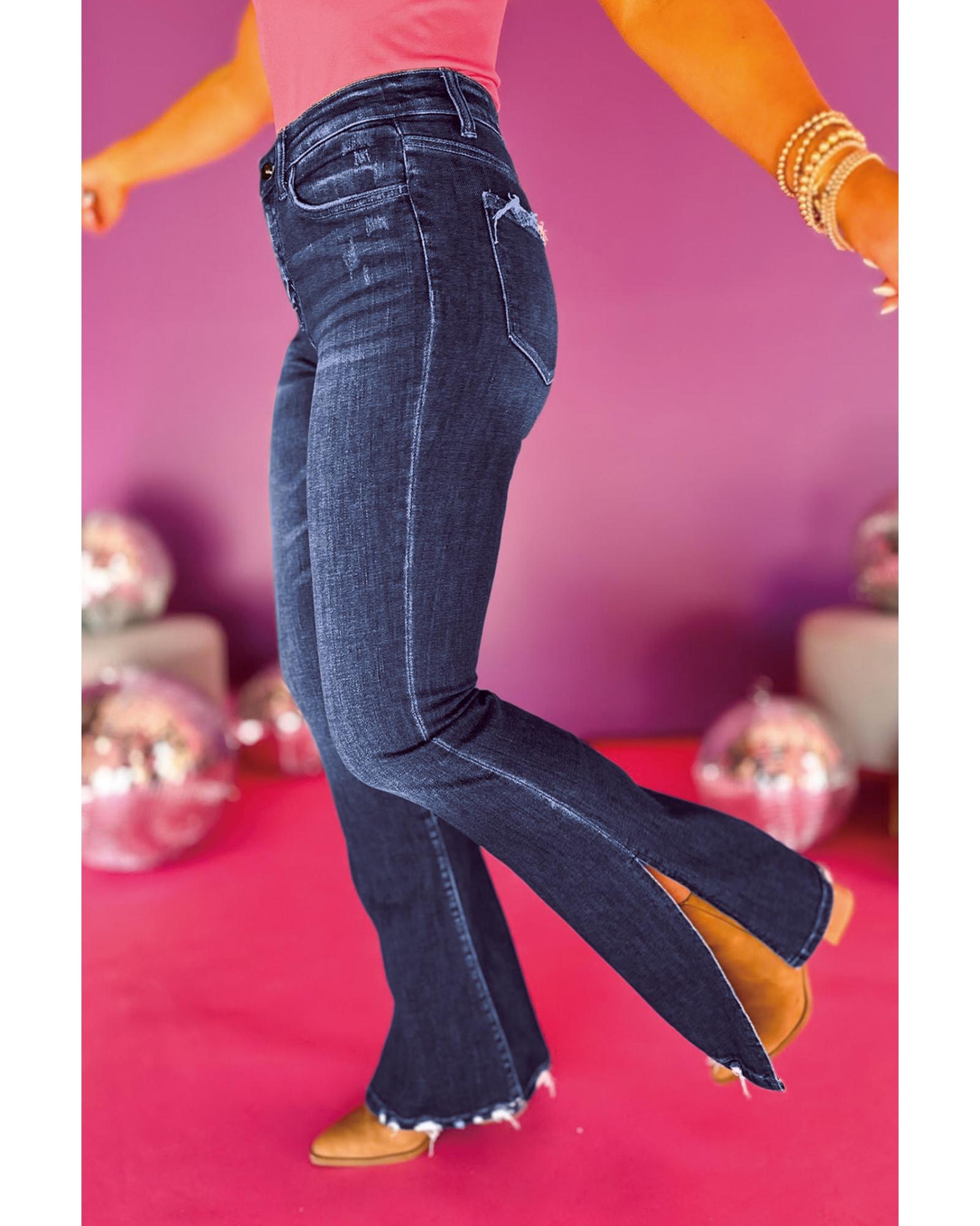 Wild Wind Medium Wash High Waist Split Flared Jeans – 10 US