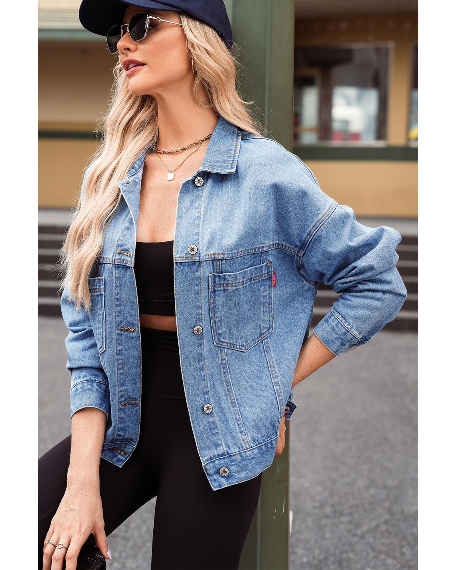 Wild Wind Washed Oversize Pocketed Denim Jacket - M Original price was: $81.99.Current price is: $44.99.