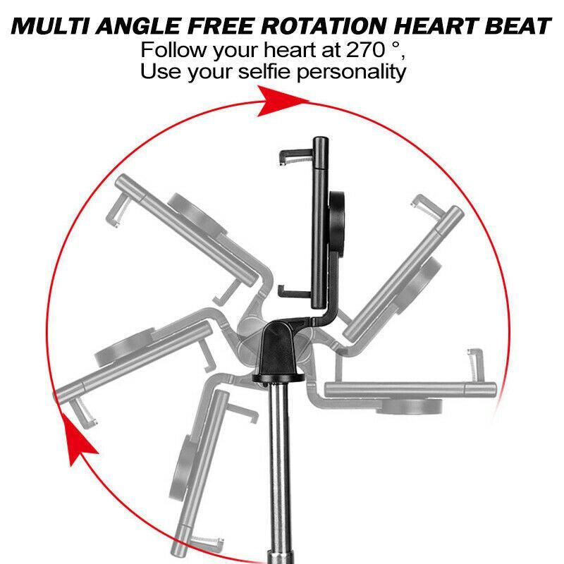 Extendable and Rotatable Arm: Stainless steel pole extends up to 70 cm, and the phone holder rotates 270° for flexible shooting angles.