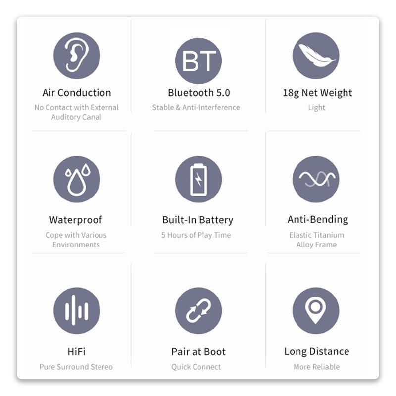 • 1 x A889Bl Air Conduction Sports Bluetooth 5.0 Wireless Headset