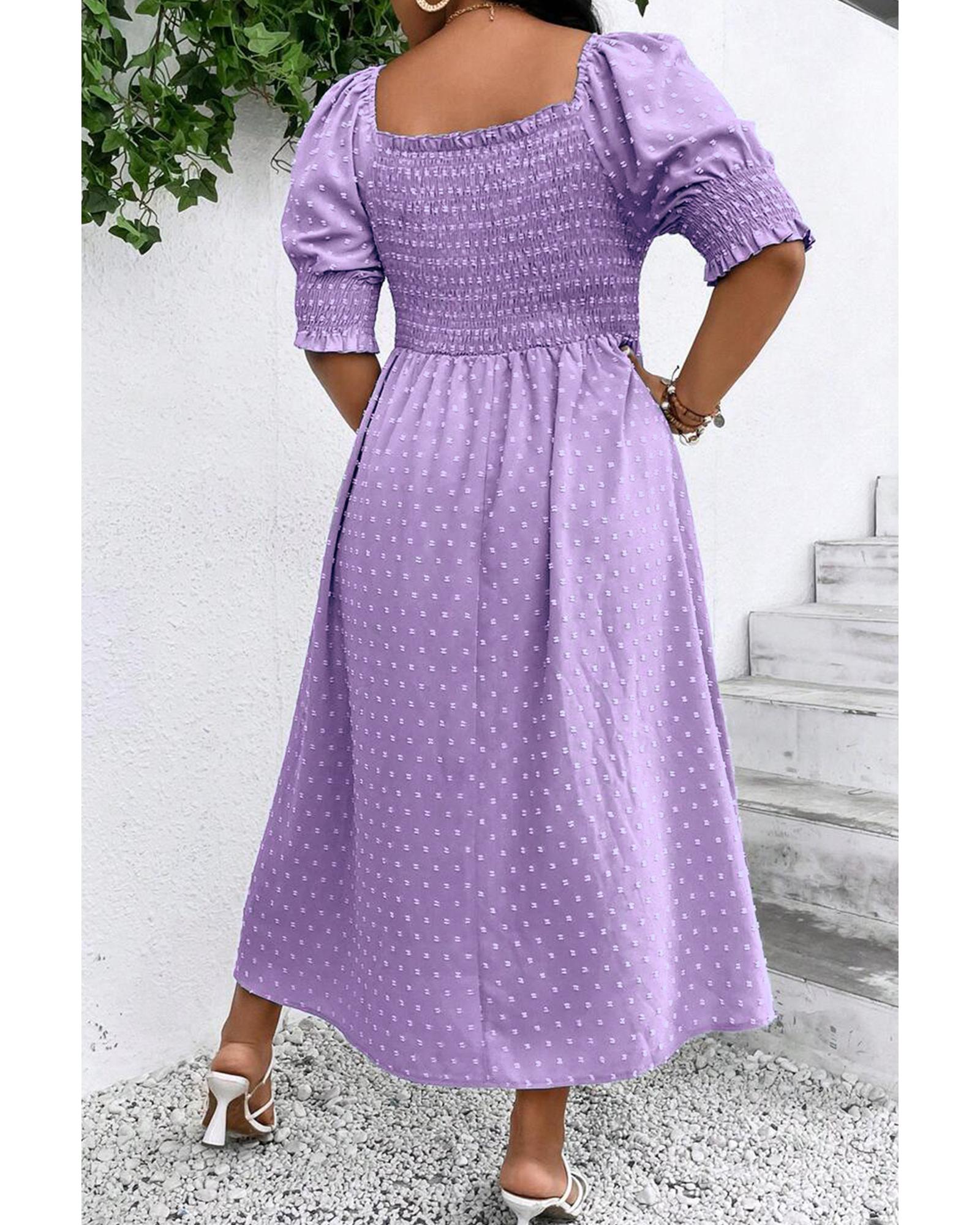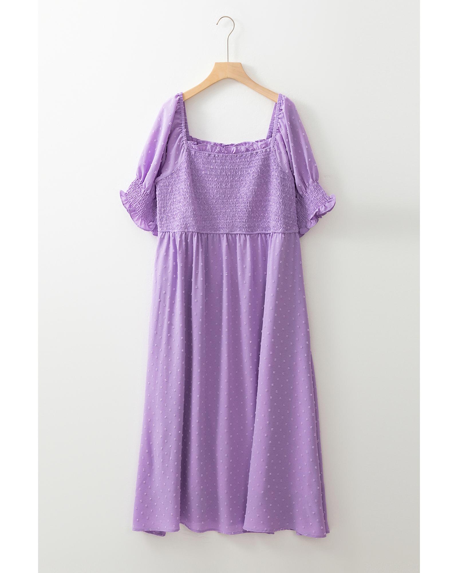 Wisteria Swiss Dot Smocked Frilled Neckline Short Sleeve Plus Size Dress – 2X