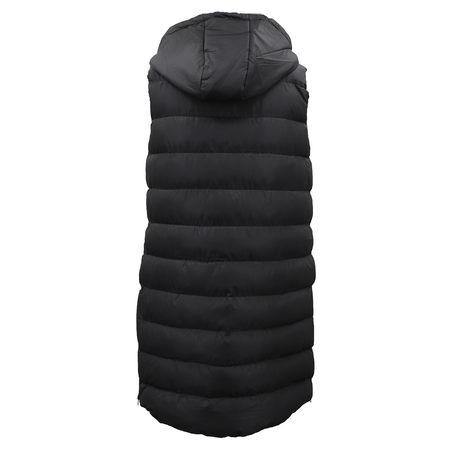 Women's Longline Padded Vest Hooded Jacket Puffer Puffy Quilted Zip Coat Gilet, Black, 14