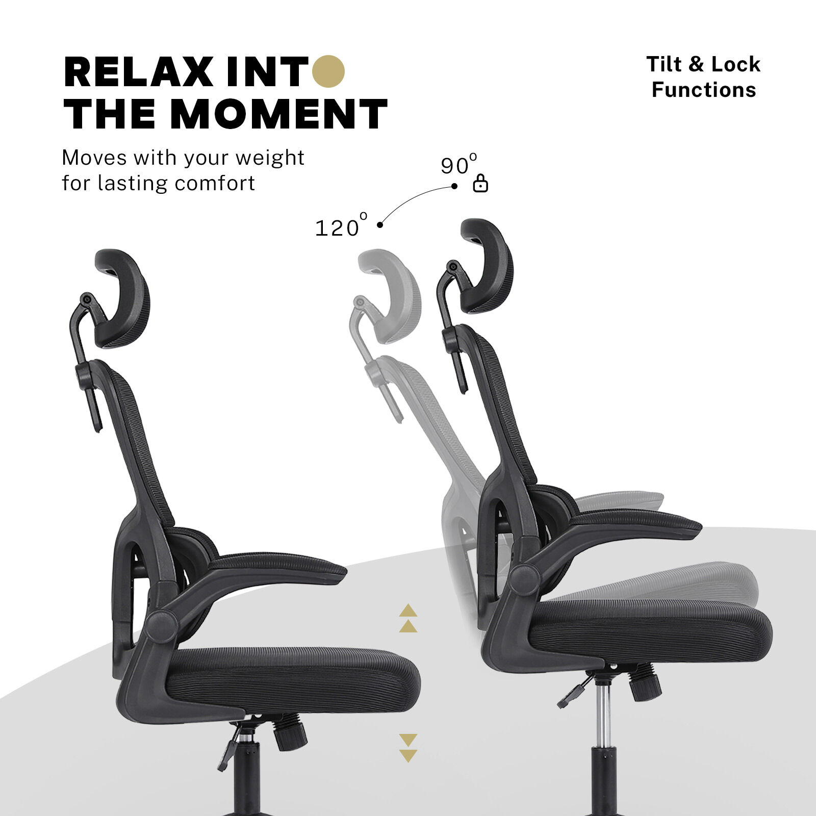 The office chair is designed to do just that. It quietly boosts your comfort while blending into your workspace. The breathable backrest keeps things cool, the built-in lumbar support has your back, literally. An adjustable headrest adds support when you lean in or sit back, while the flip-up arms give you more room when needed and let you tuck the chair neatly under your desk once the day is done.