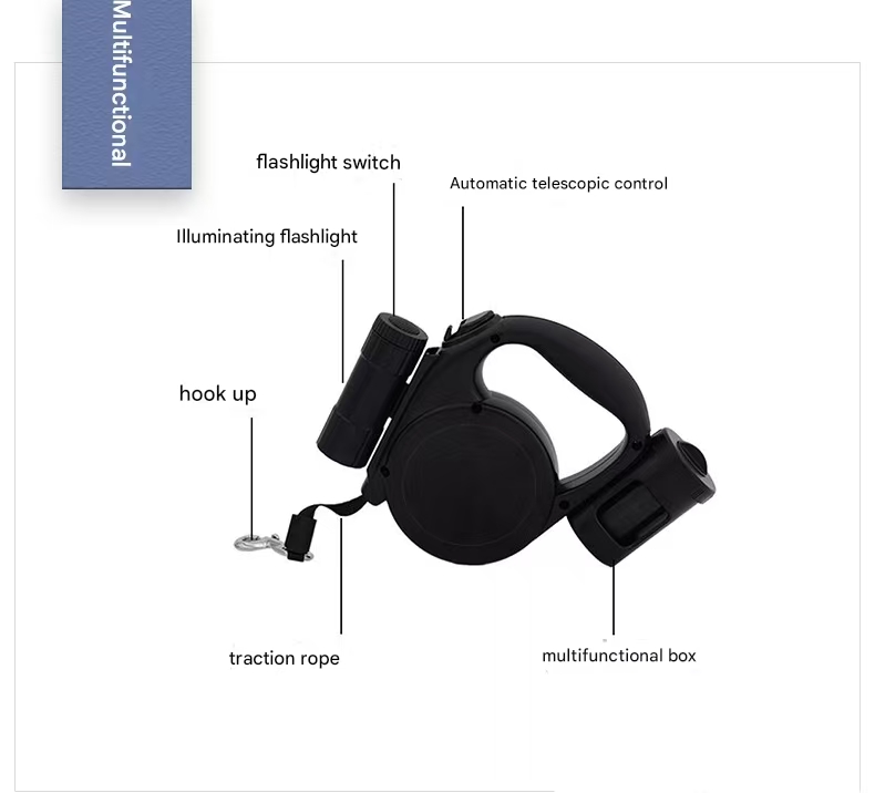 • 3-in-1 Multifunctional Design: This leash integrates a retractable lead, a bright LED flashlight, and a convenient pet waste bag dispenser. Say goodbye to juggling multiple items and enjoy streamlined walks.