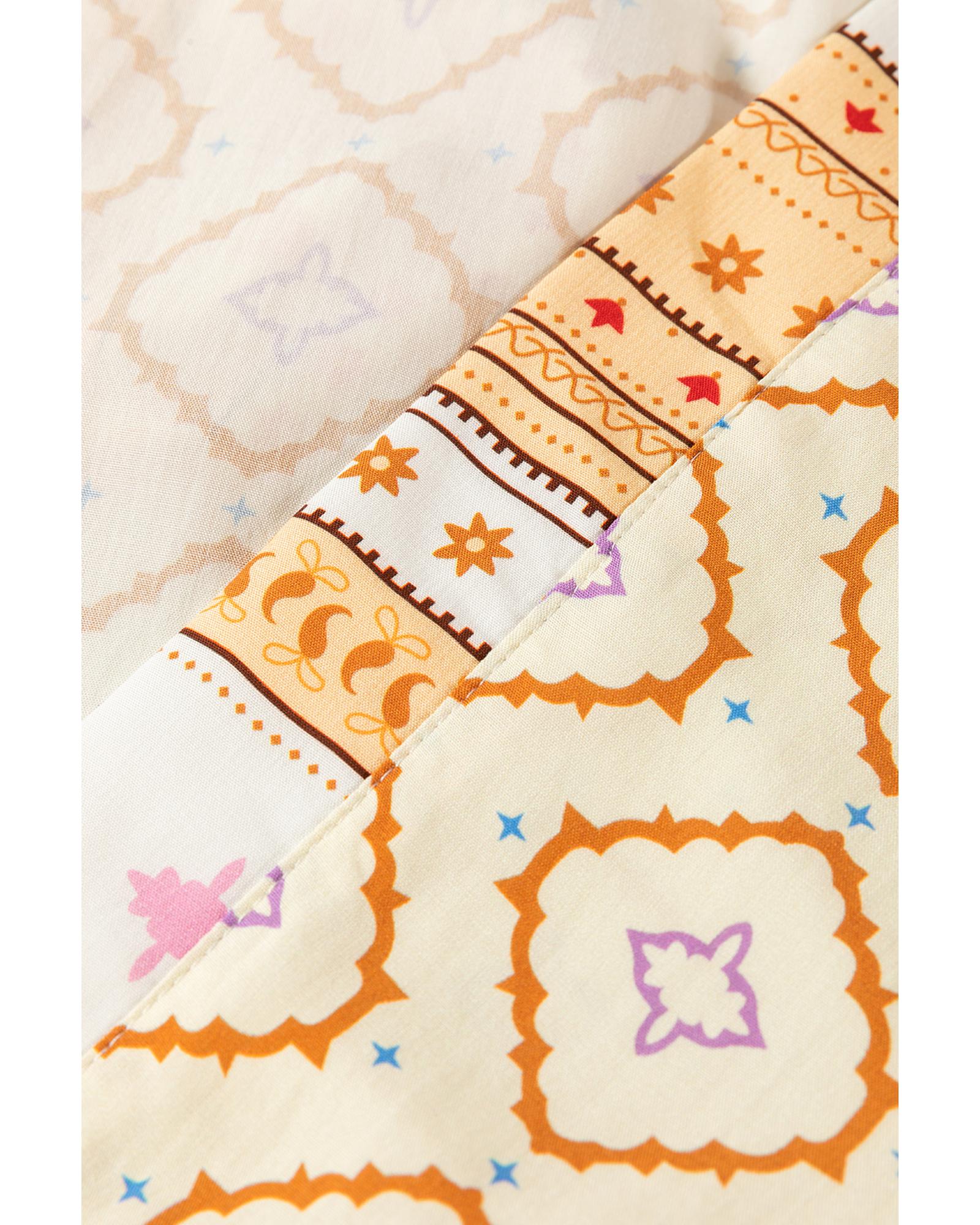 Yellow Bohemian Geometric Printed Loose Sleeve Long Kimono – M