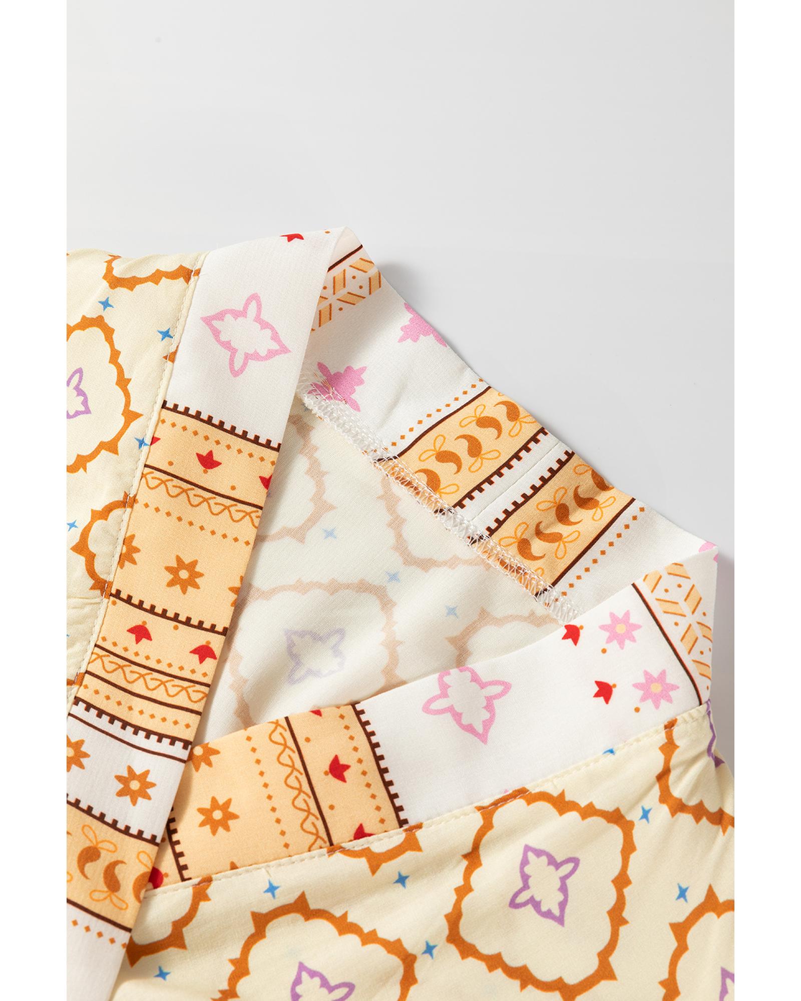 Yellow Bohemian Geometric Printed Loose Sleeve Long Kimono – S
