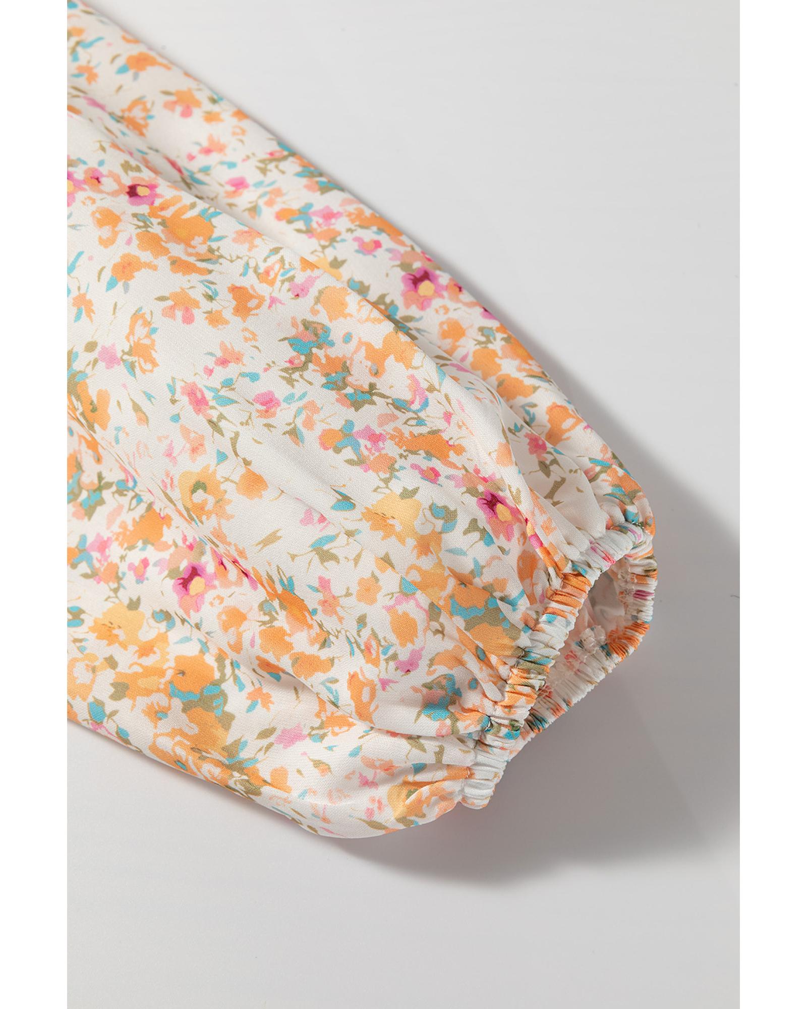 Yellow Boho Floral V Neck Ruffled Empire Waist Long Sleeve Mini Dress – XL