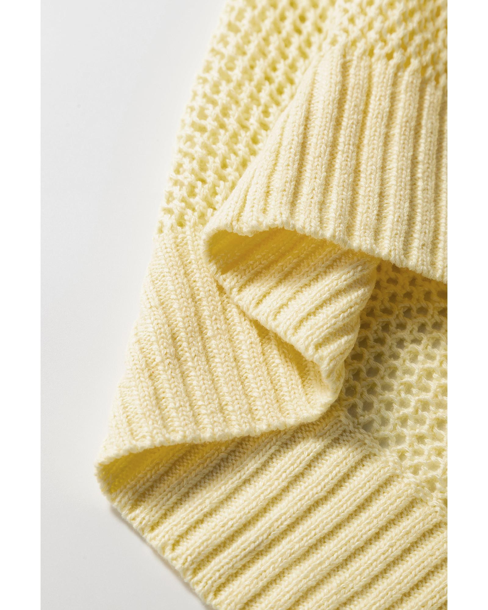 Yellow Solid Color Hollowed Knit Round Neck Sweater Vest – L