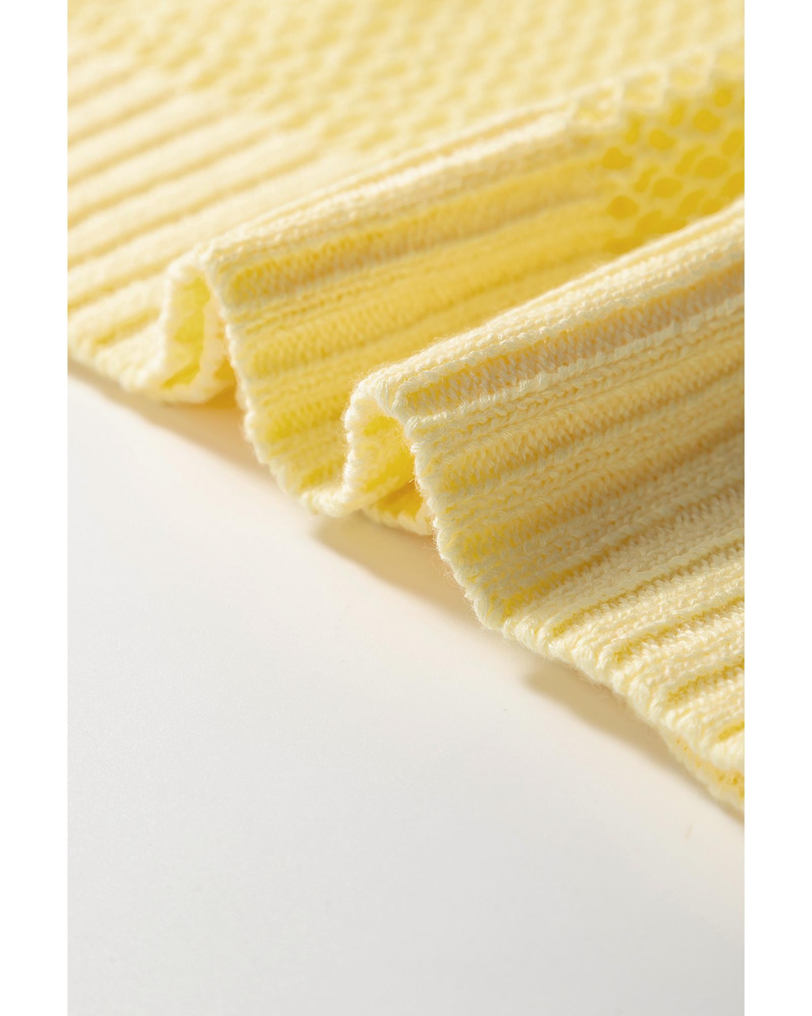 Yellow Solid Color Hollowed Knit Round Neck Sweater Vest – XL