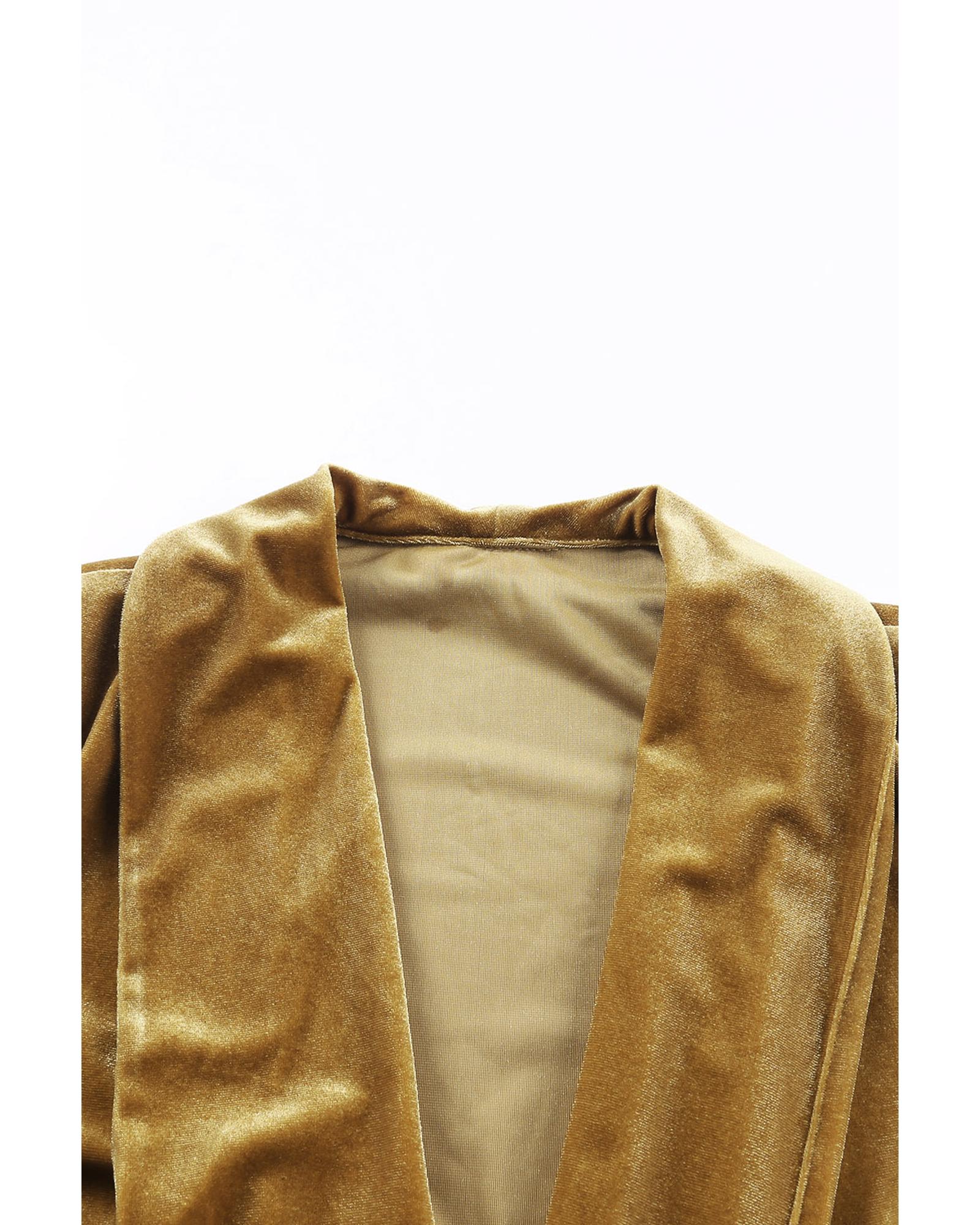 Yellow Velvet Open Front Pocketed Long Duster – S