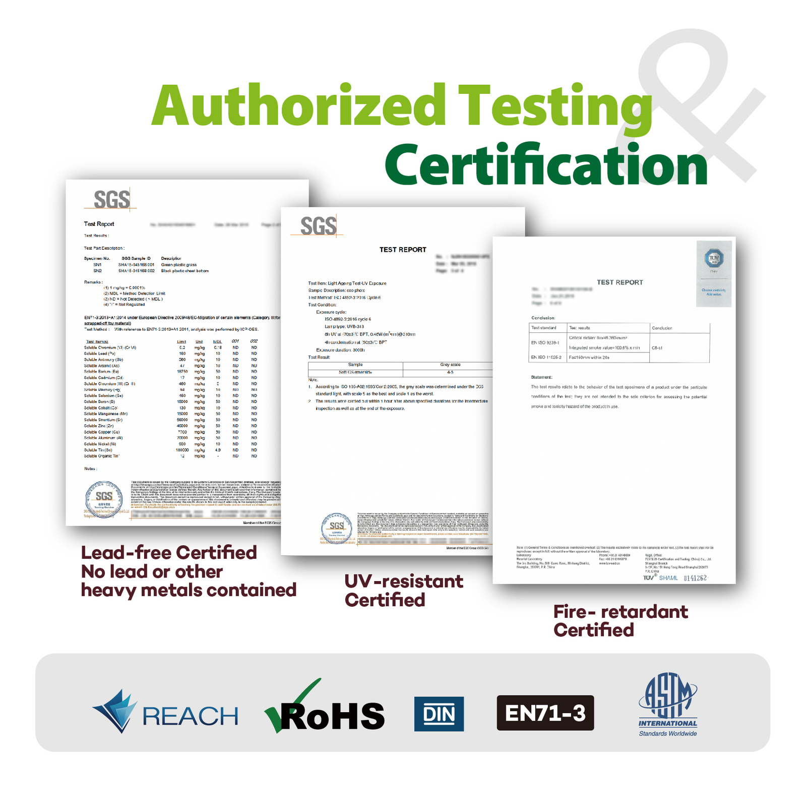 - Synthetic grasses to create a real and natural appearance