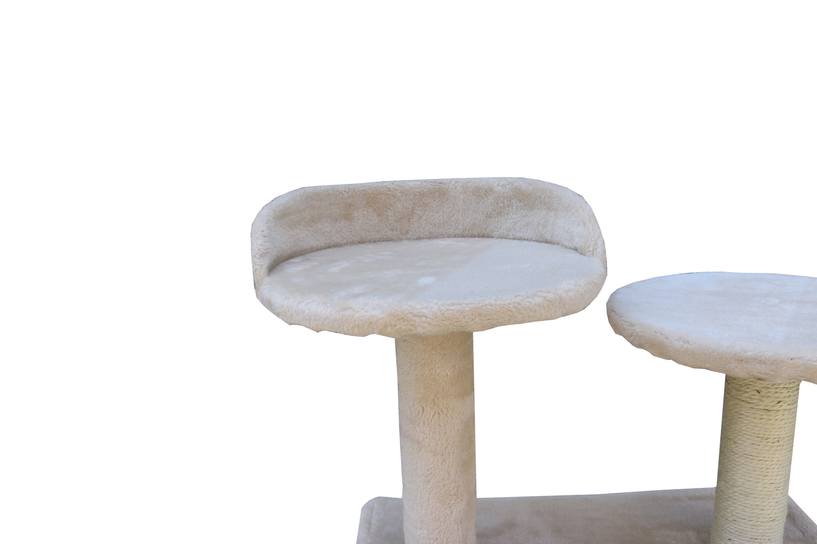 The cat tree comes with 2 bed cubes and a few platforms to provide some shelter. The tubes are wrapped with sisal ropes for your pets to scratch and play with. The sturdy base prevents any swaying so it is safe on any flat surface so you do not have to worry about injury to your cat. The stylish cat tree will perfectly blend in with your decor.​