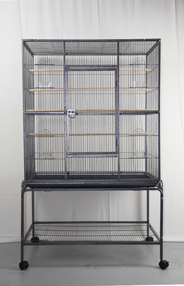 Our goodquality wrought iron birdcage features perches, feeders and ample room for your bird to spread their wings.