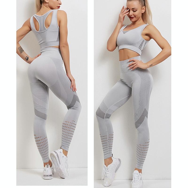 Yoga Fitness Set Women Sports Bra & Leggings Size L – Gray – M
