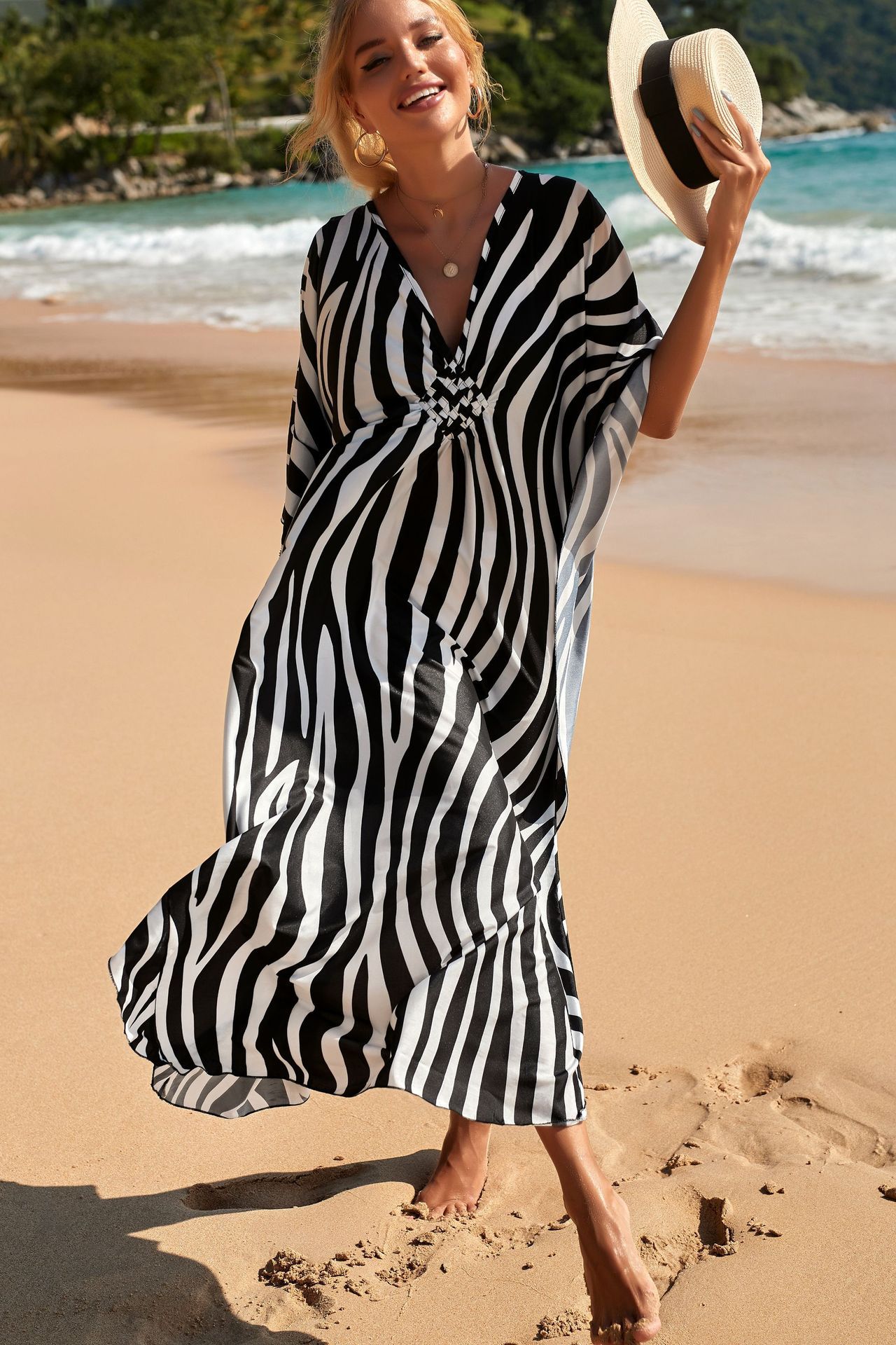 Zebra Print Loose Fit Caftan Dress – Resort Style Beach Coverup for Women