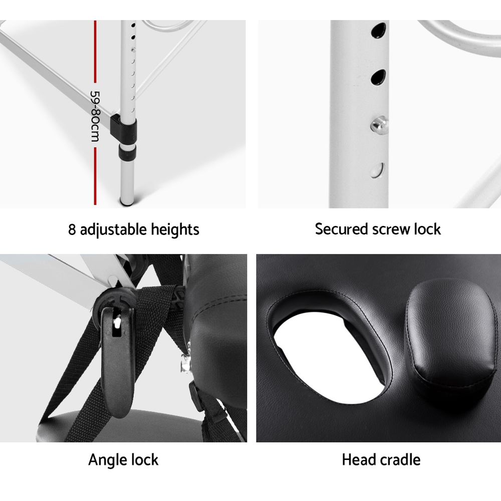 Zenses Massage Table 55cm Portable 2 Fold Aluminium Beauty Bed Black
