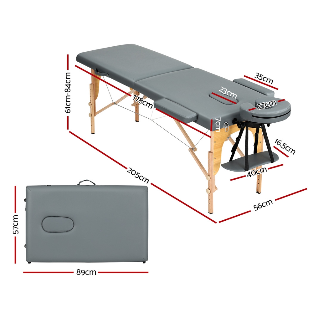 Zenses Massage Table 56cm Portable 2 Fold Wooden Beauty Bed Grey