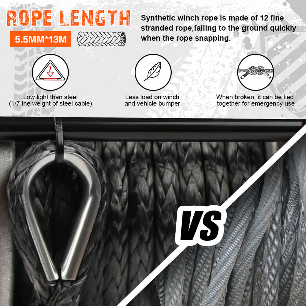 ZESUPER 12V Electric Winch 4500lb Synthetic Rope Boat Winch ATV Winch Trailer Winch 4WD