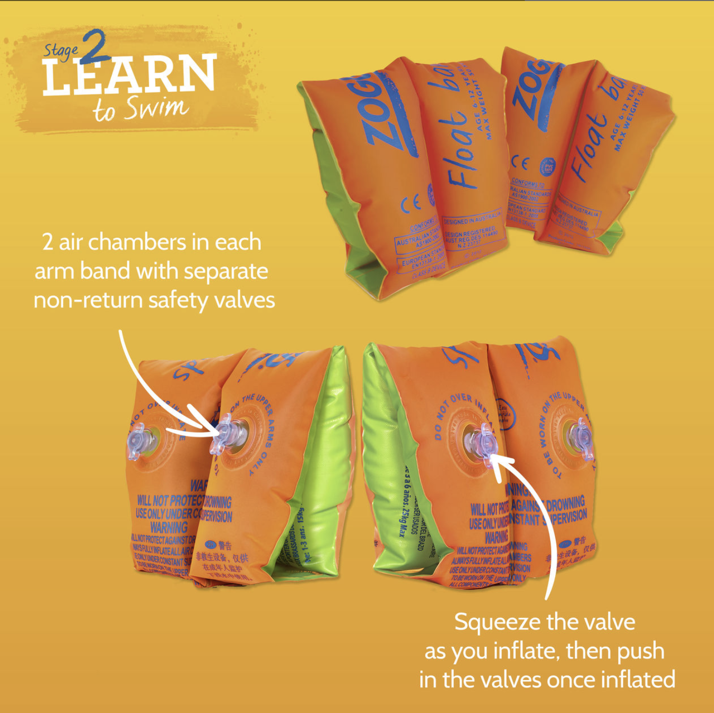 ZOGGS Float Bands Stage 2 Learn To Swim Childrens Arm Bands Float Inflatable Rings Swimming – Up to 12 Months Old